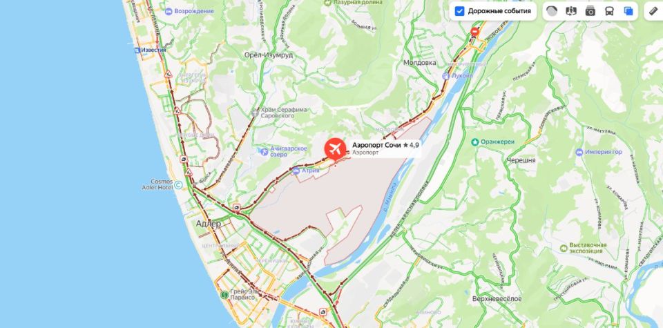 Большие пробки образовались на пути в аэропорт Сочи. Автомобили почти не двигаются, сообщает Ассоциация туроператоров России (АТОР).Жителям и туристам Сочи рекомендуют воспользоваться «Ласточкой», чтобы успеть на свой рейс или быстрее уехать...