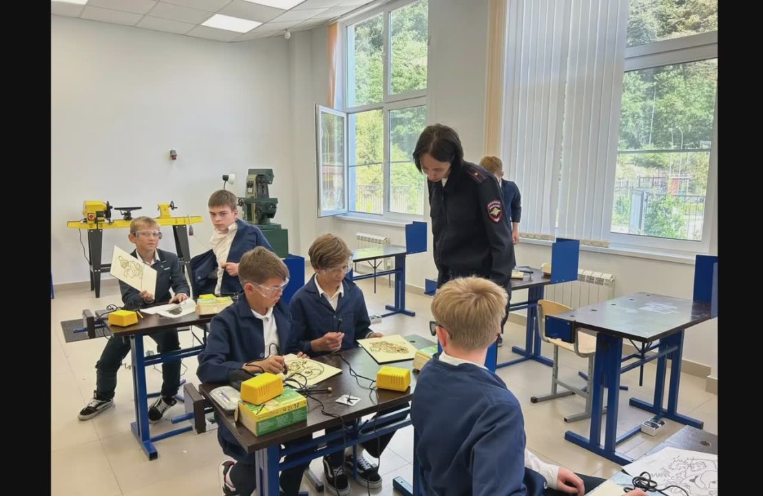 На уроке технологии дорожные полицейские застали мальчишек, которые увлеченно выжигали различные поделки. Инспекторы рассказали ребятам о правилах дорожного движения для мопедов, скутеров, велосипедов и СИМ. Довели информацию о том, что для управления скутером необходимо иметь водительское удостоверение категории «М». Также напомнили ребятам о том, что мото-, велотранспорт и СИМ – самые незащищенные виды транспортных средств, и даже незначительные столкновения, а иногда и просто падение, могут повлечь за собой серьезные последствия. Ученики активно участвовали в беседе, отвечали на вопросы и пообещали, что на следующую встречу приготовят для инспекторов поделки на тему безопасности дорожного движения.