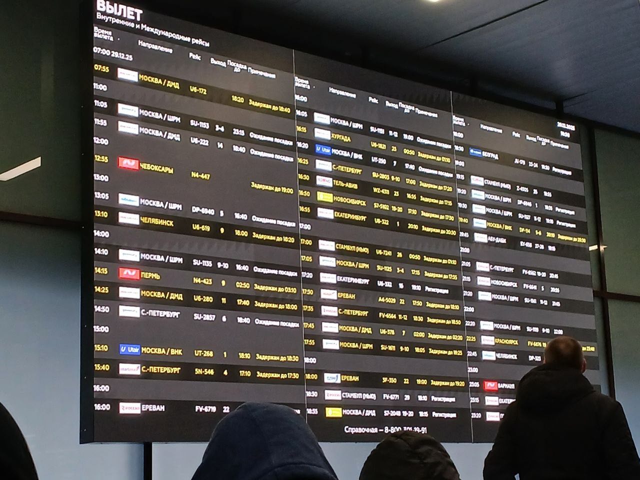 По причине плохих погодных условий задерживаются авиарейсы в международном аэропорту Сочи.