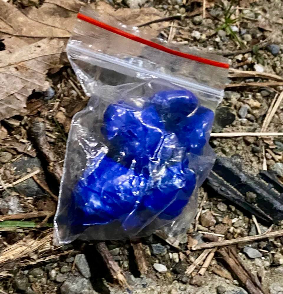 При задержании она выбросила из кармана зип-пакет с синими свёртками.