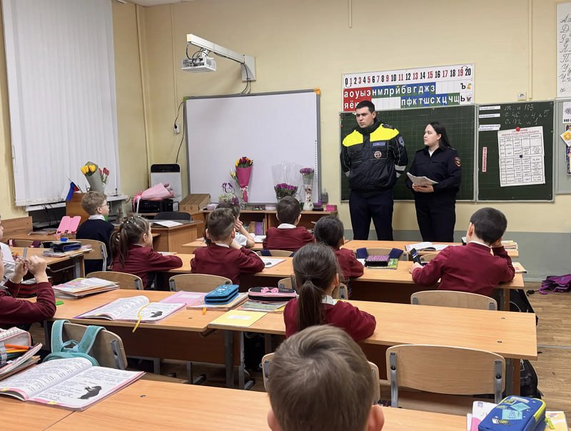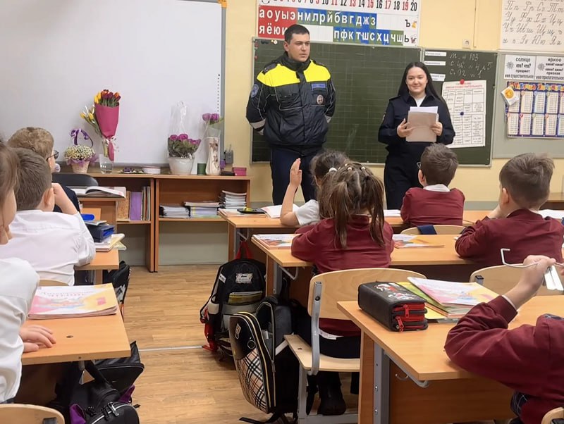 Сотрудник Госавтоинспекции рассказал школьникам об опасных ситуациях, которые могут возникнуть на проезжей части дороги, к чему приводят нарушения правил дорожного движения и невнимательность на дороге. Напомнил о правилах перехода через дорогу, сигналах светофора, дорожной разметке и о том, что при переходе проезжей части всегда нужно быть внимательным, а также всегда пристегиваться в автомобиле.
