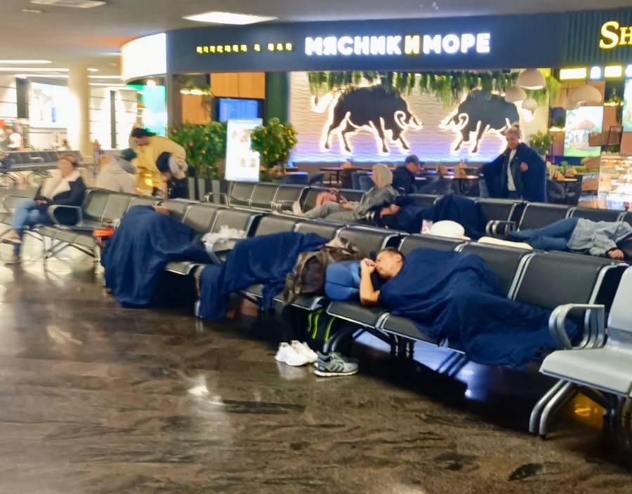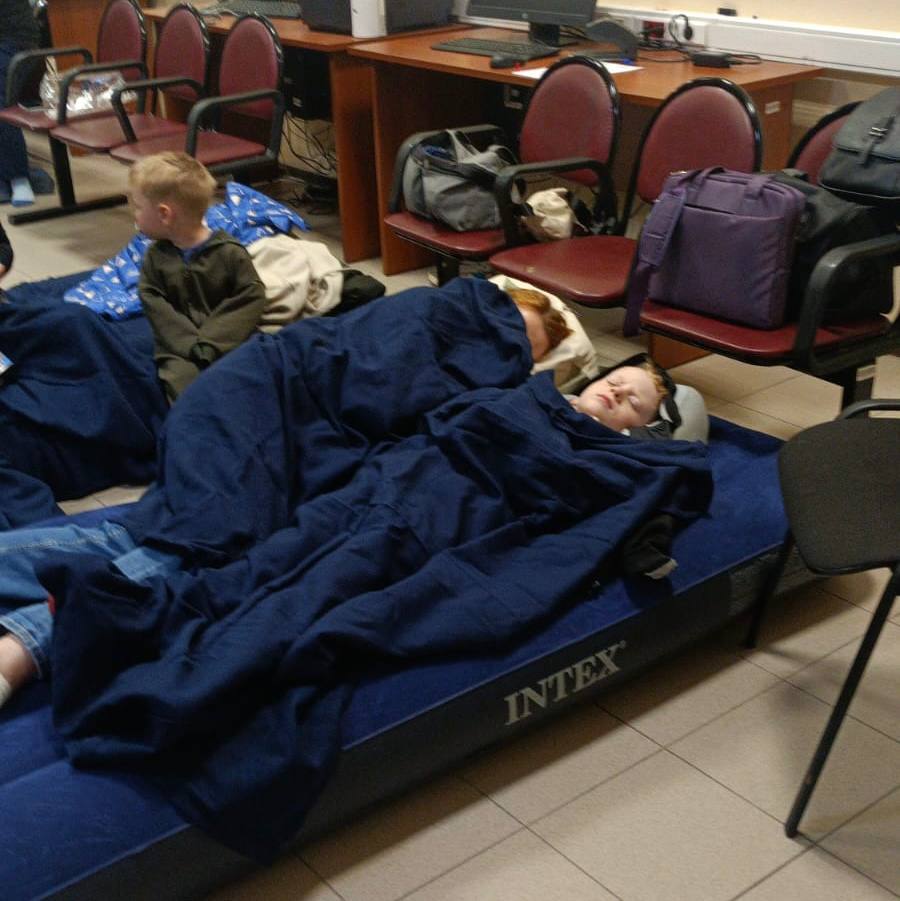 Сегодня ночью, в период ограничений, мы размещали родителей с детьми в отдельном помещении и выдавали матрасы и пледы для сна. Обеспечили дополнительные места для сидения, а также раздавали коврики для комфортного размещения пассажиров в терминале.