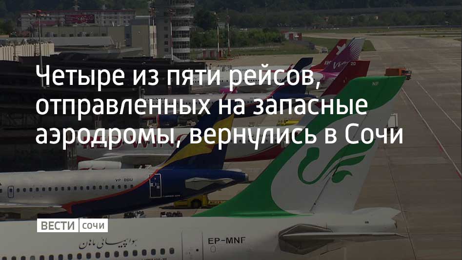 По последним данным, четыре из пяти самолетов, ушедших на запасные аэродромы, прибыли в Сочи, были обслужены и отправлены в города назначения. Последний из рейсов должен прибыть в Сочи ориентировочно в 18:10. В аэропорту Сочи задержаны 16 рейсов.