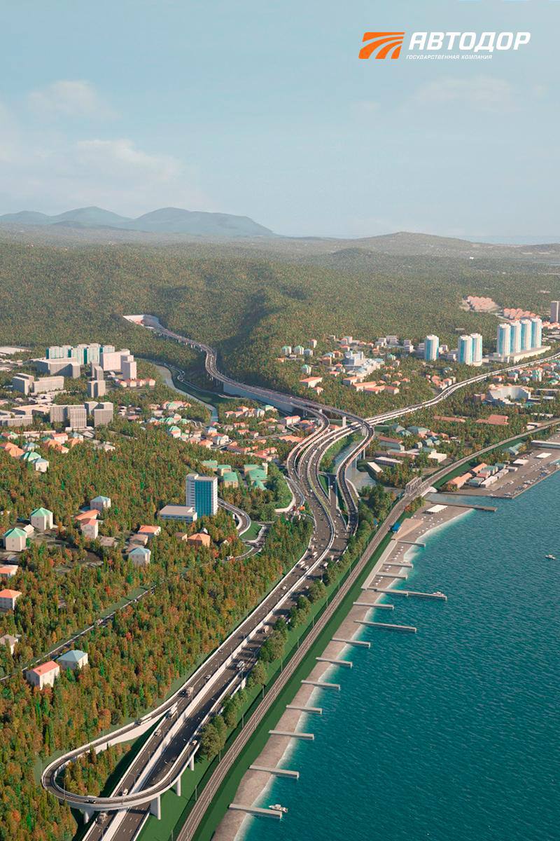 Компания «Автодор» приступает к пятому этапу строительства обхода города. В районе санатория «Кудепста» появится новая разворотная петля — эстакада длиной 368 м на семи опорах.