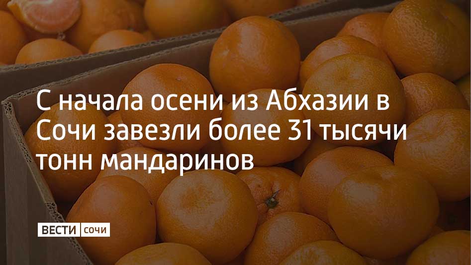 По прогнозам Минсельхоза Абхазии, до конца сезона из республики экспортируют около 33 тысяч тонн мандаринов. Кроме мандаринов из Абхазии завозят фейхоа – 1,2 тысячи тонн, лимоны – 923 тонны, хурму – 509 тонн и апельсины – 302 тонны.