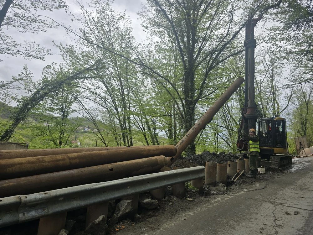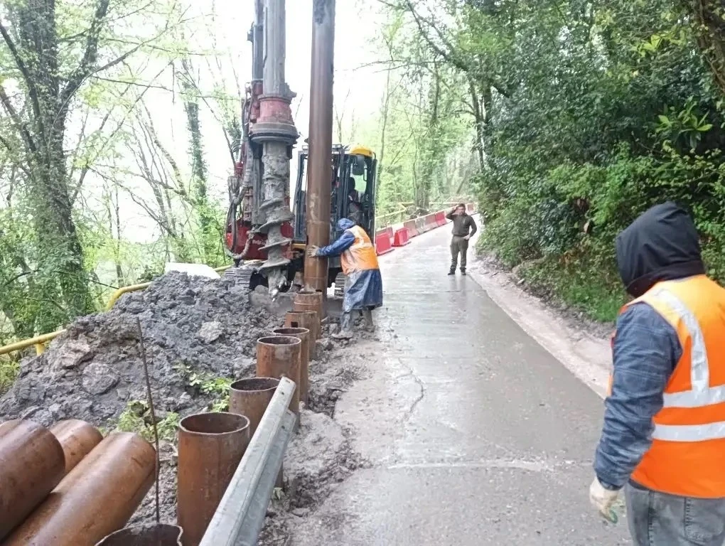 Протяженность аварийного участка составляет 200 метров. В настоящее время проводятся буровые работы по укреплению склона и подготовка рабочей площадки под буровую установку в месте обвала грунта. Завершить все работы планируется до декабря 2026 года.