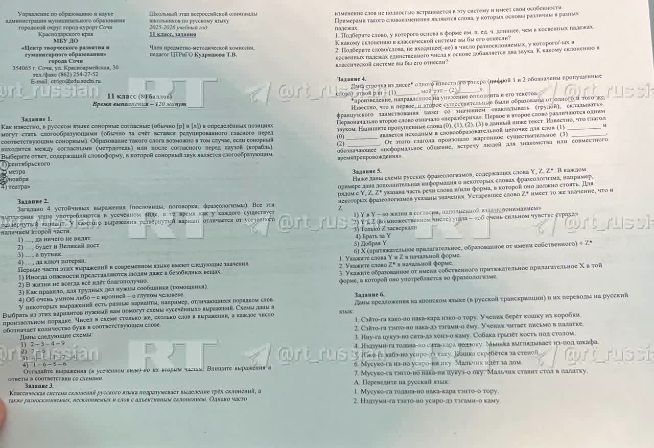 В администрации Сочи проверяют информацию о том, что текст песни иноагента Oxxxymiron попал в задания школьной олимпиады по русскому языку.