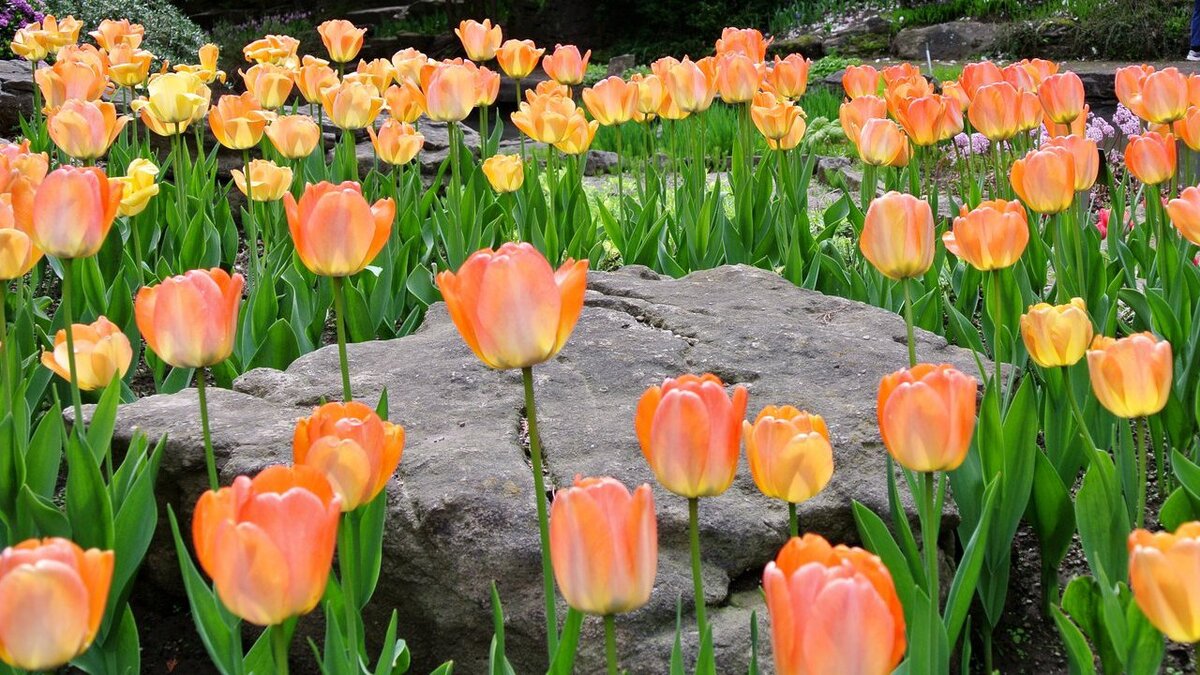 - Тюльпан Фостера (Tulipa fosteriana) – высокие цветы с удивительным разнообразием сортов: Yellow Purissima, Madame Lefeber, Orange Emperor. Высота до 50 см.