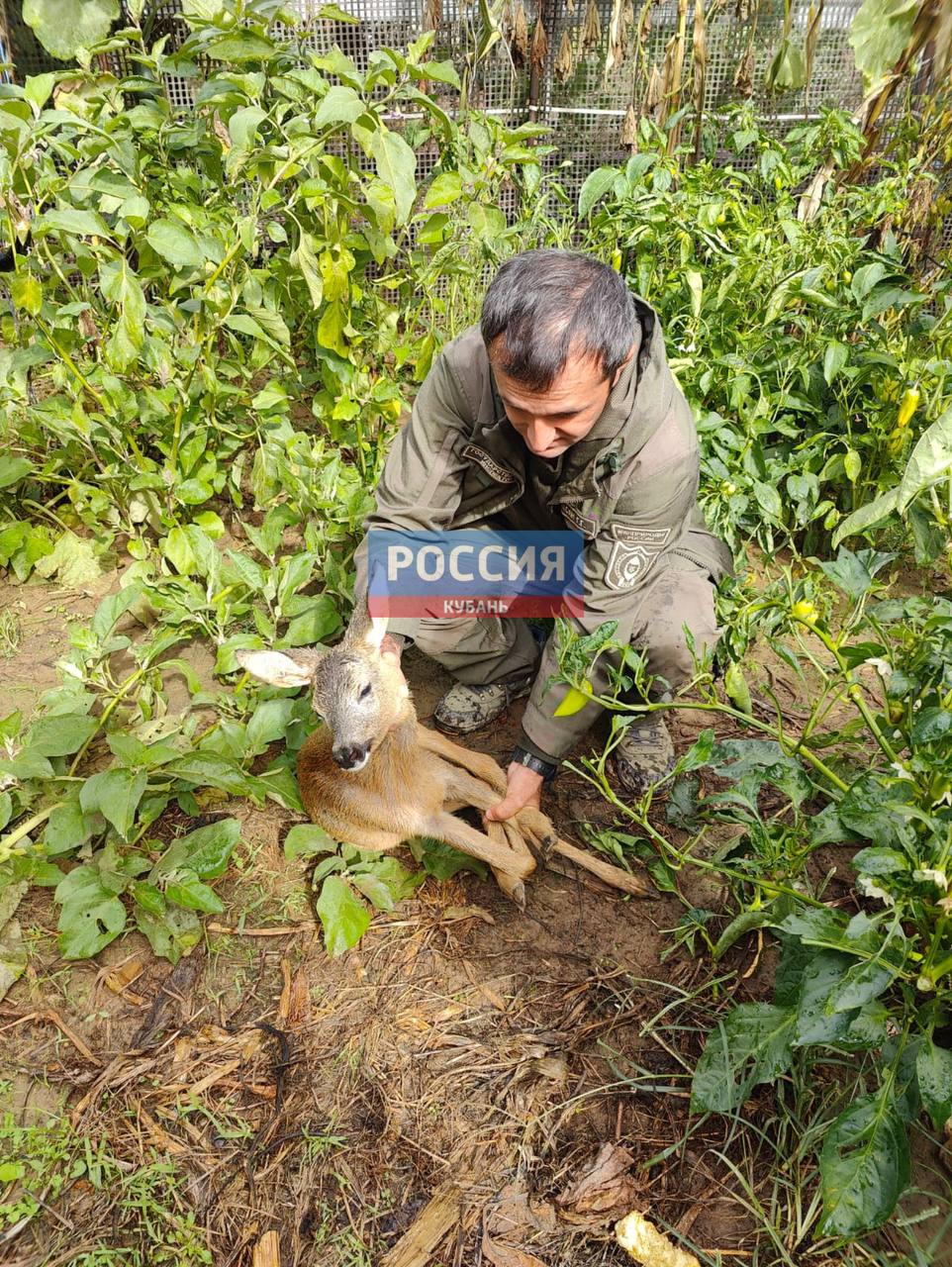 В селе Примерное местный житель обнаружил в густой растительности обессиленного детёныша. Вероятно, малыш пытался спастись от собак.