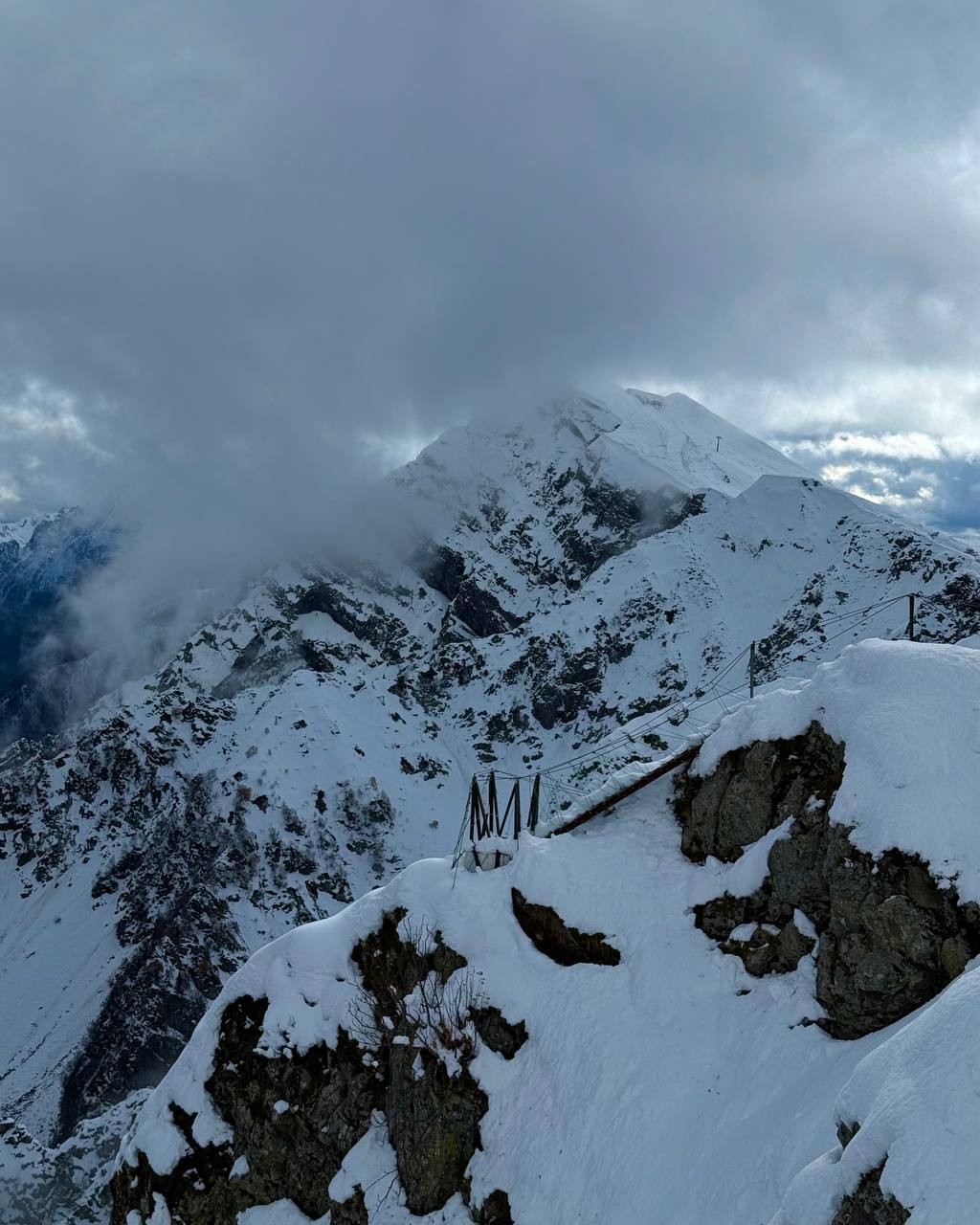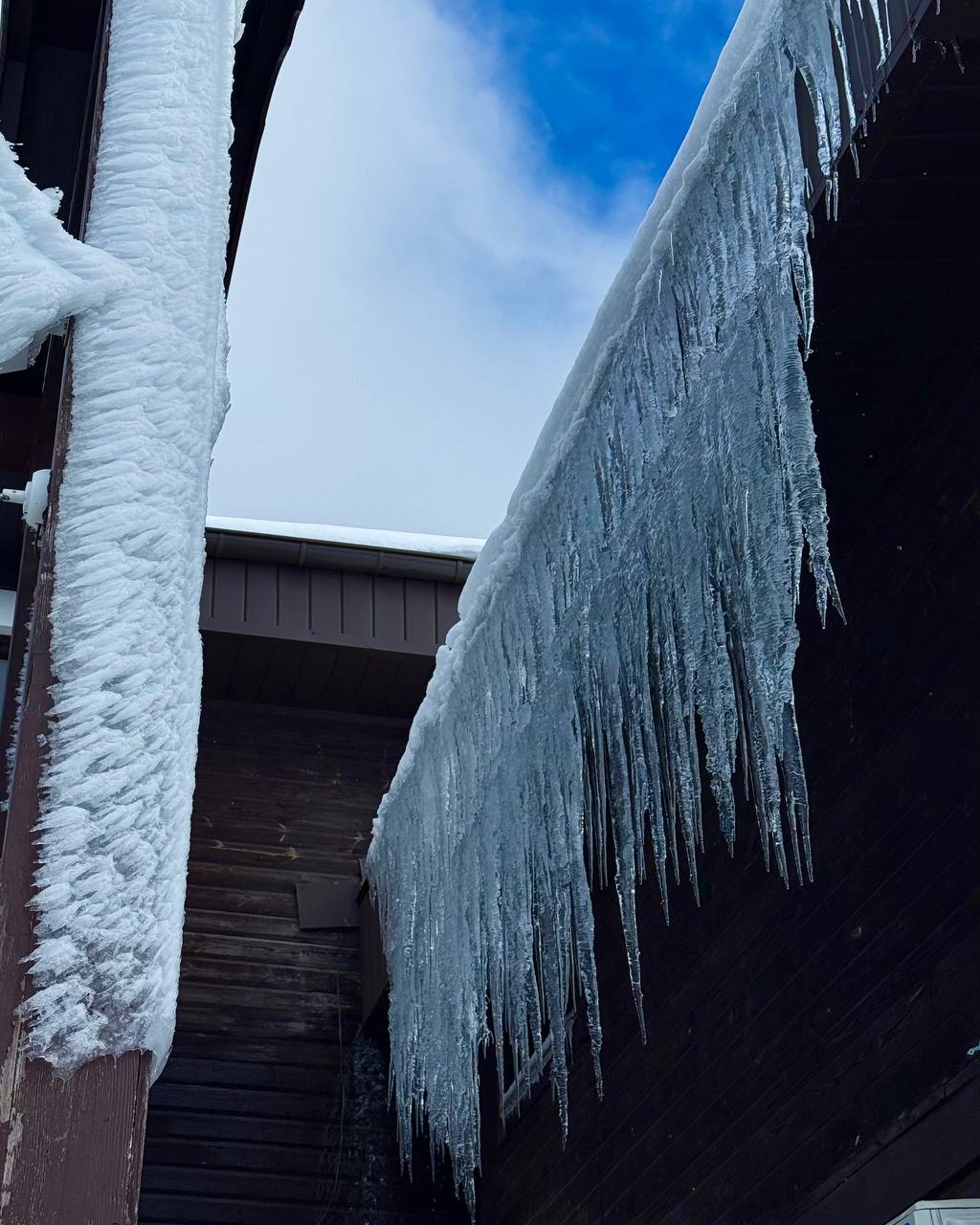 На отметке 2320м чувствуется, что властвует зима. Ветер становится заметно холоднее, снег ложится плотным слоем и местами превратился в настоящий лёд. С крыш свисают огромные сосульки.