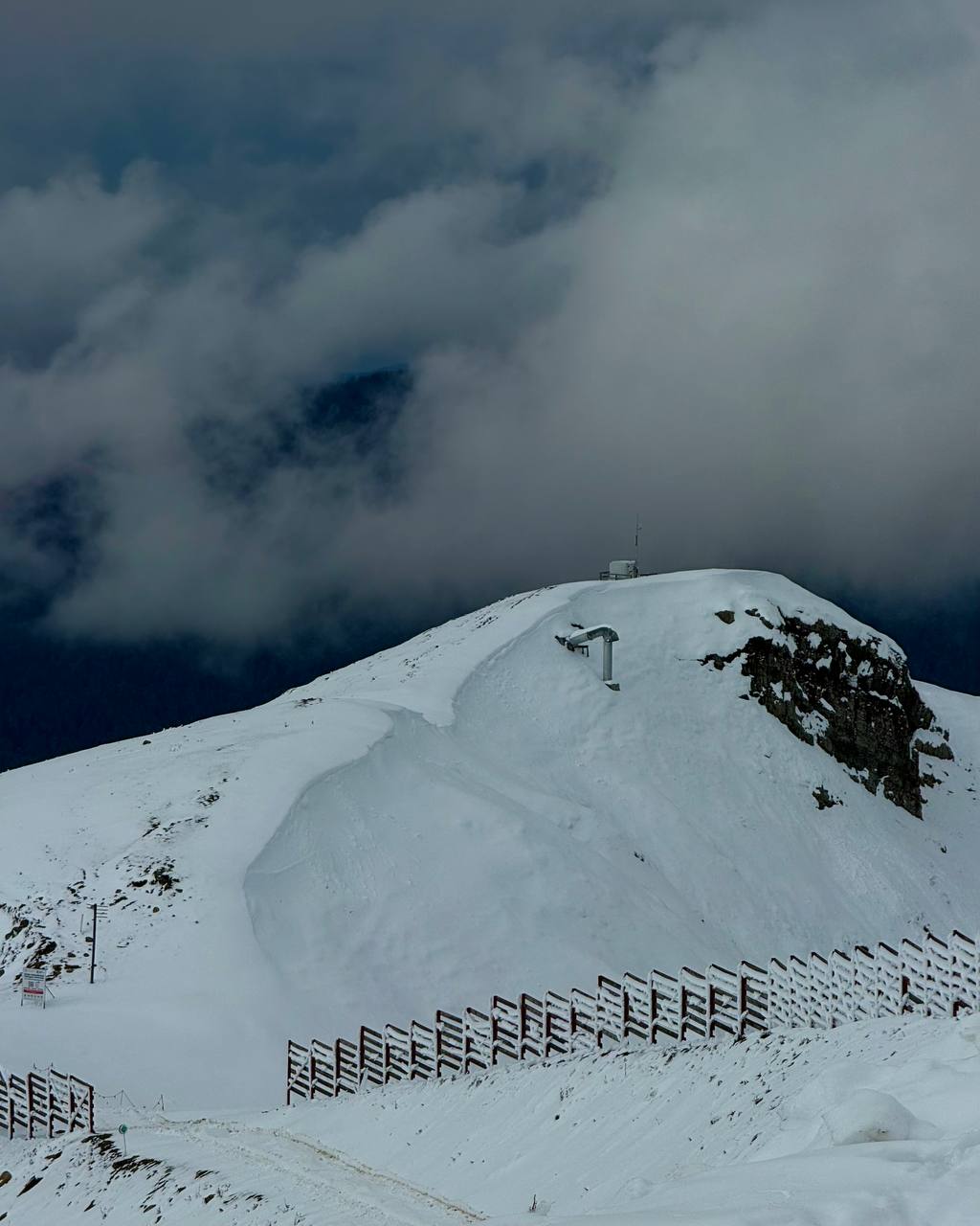 От отметки 1500м уже постепенно в воздухе появляется прохлада, а чем ближе поднимаешься на самый верх, тем все больше первые снежные островки. Осенние краски сменяются серо-белыми оттенками.