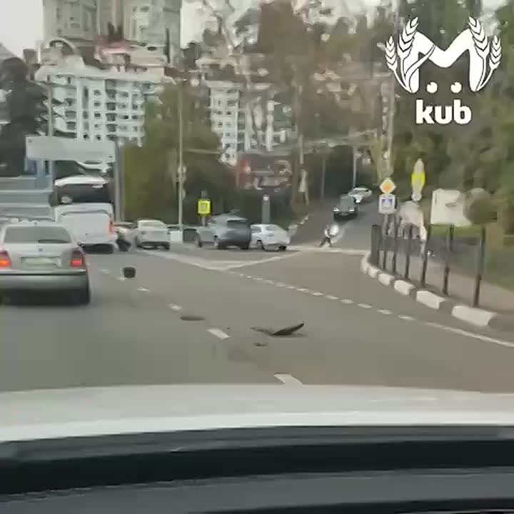 Экскурсионный автобус столкнулся с легковушкой в центре Сочи.