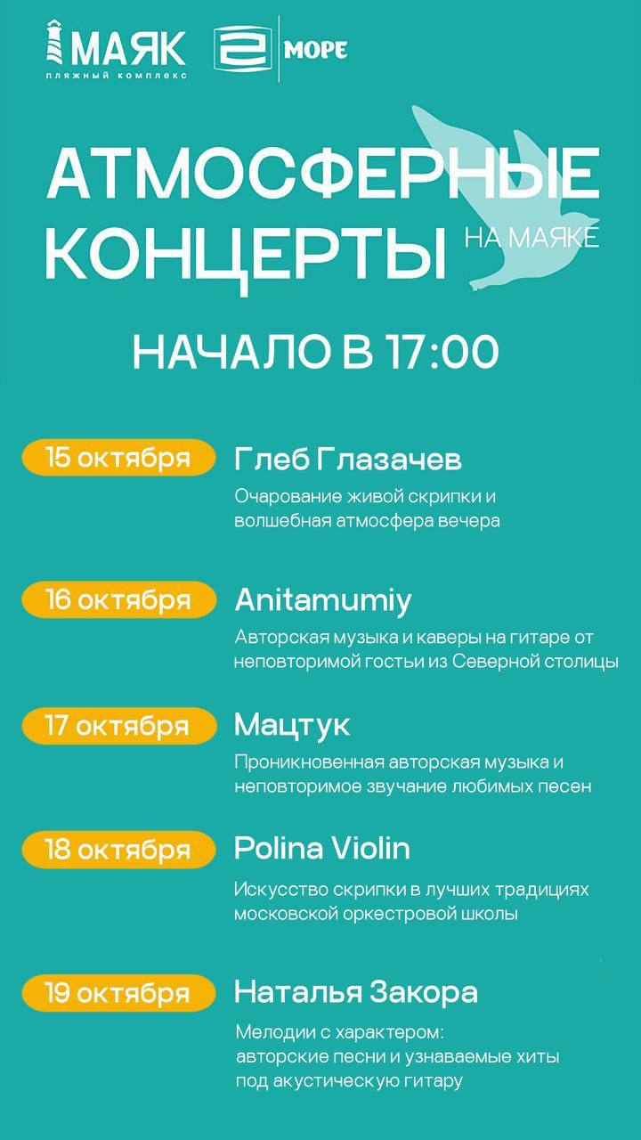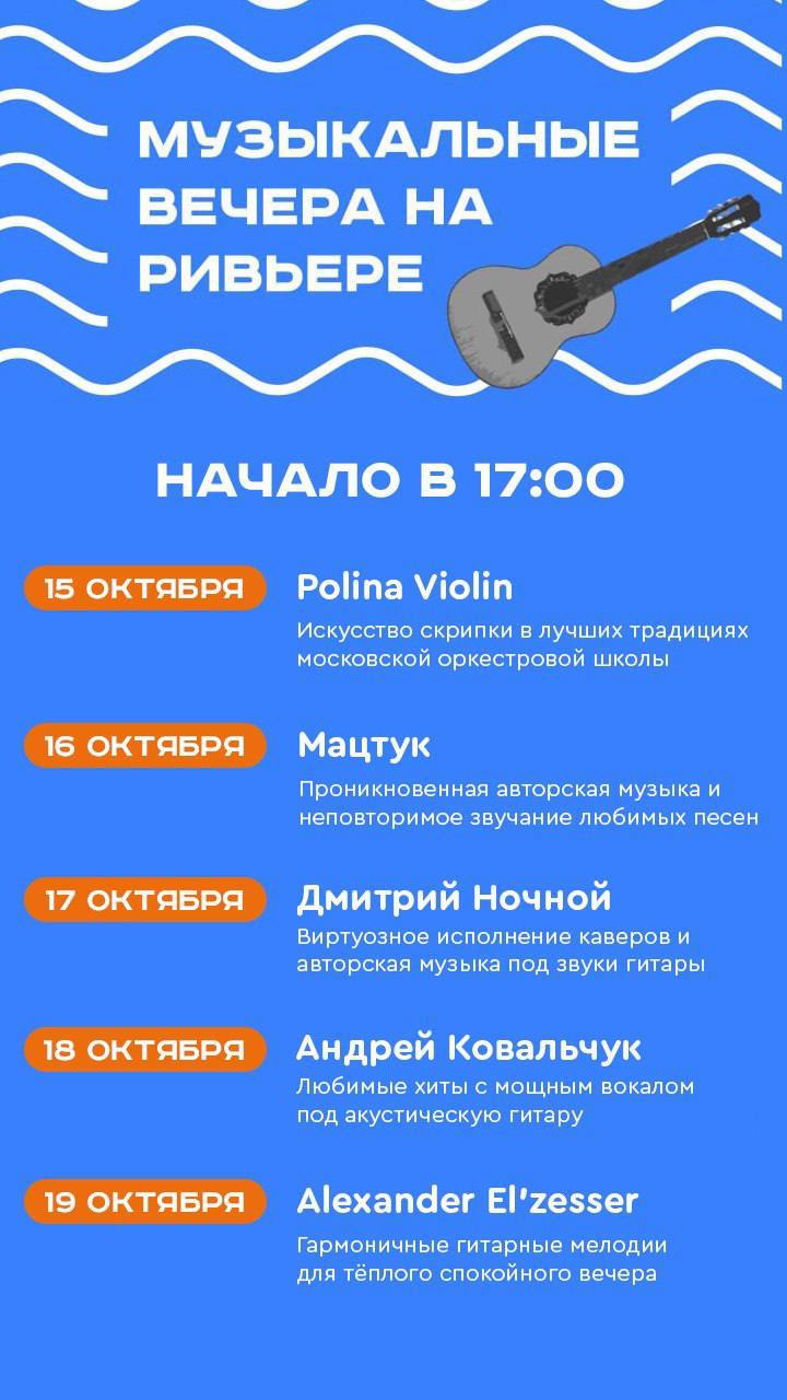 С 15 по 19 октября на пляжах «Ривьера» и «Маяк» проходят открытые концерты.