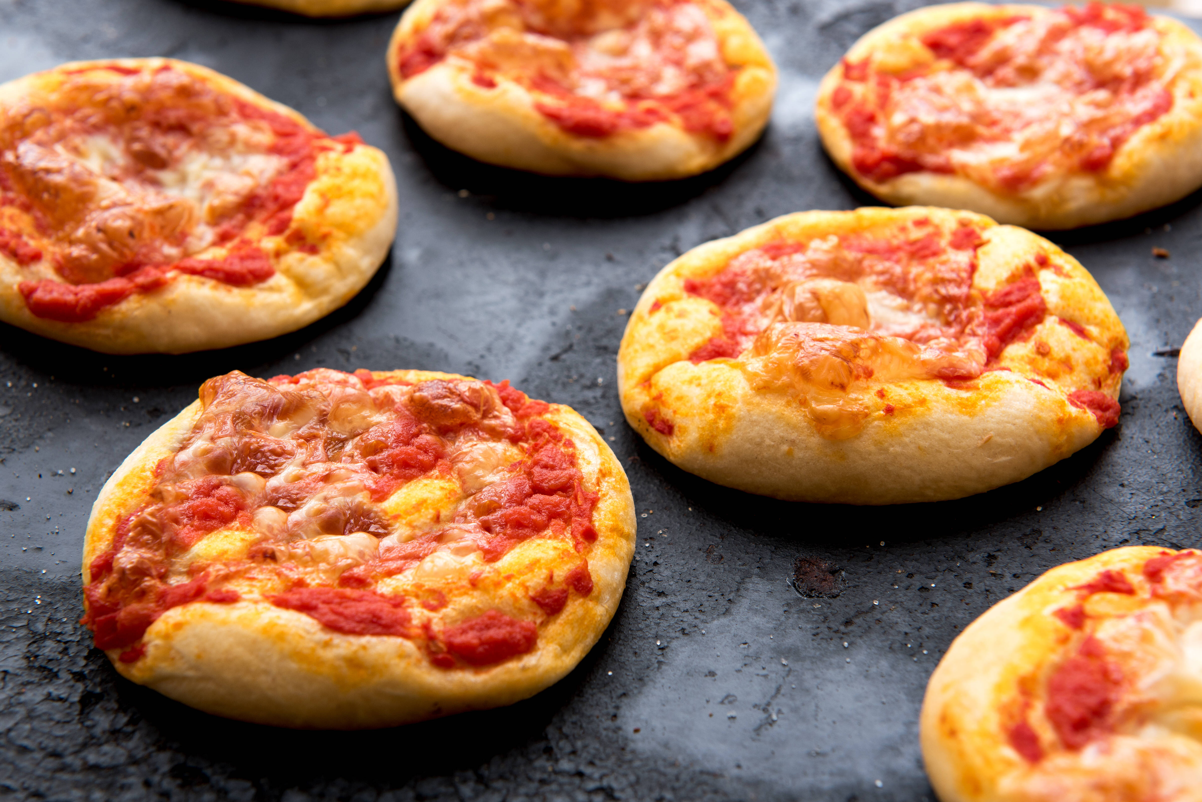 Для мини-пиццы начинка должна быть полностью готова. Пока тесто доходит, лук обжарить до золотистого цвета, добавить перец. Можно немного посолить и поперчить.