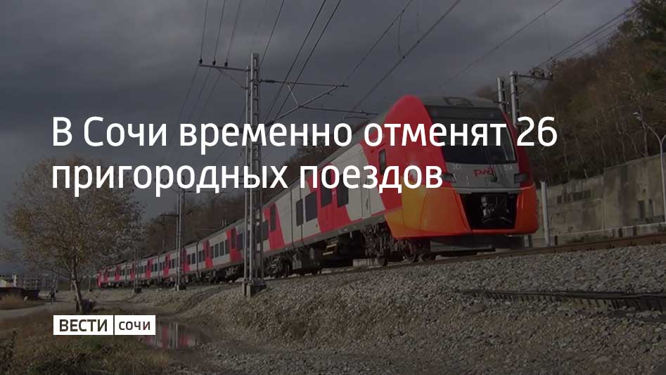 Временно отменяются некоторые пригородные поезда, курсирующие по маршрутам: Туапсе – Аэропорт Сочи, Туапсе – Имеретинский Курорт, Имеретинский Курорт – Сочи, Сочи – Аэропорт Сочи, Имеретинский Курорт – Туапсе, сообщили в администрации Сочи.