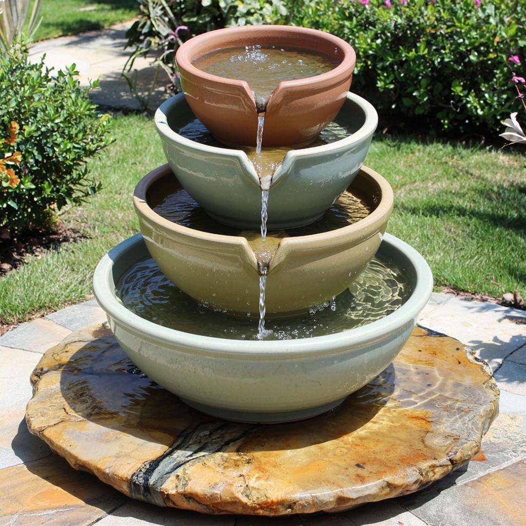 Основной идеей такой конструкции является каскад: вода плавно переходит из одного горшка в другой, расположенный ниже. Сердцем этой системы является погружной насос, который запускает циркуляцию воды. Он берёт воду из резервуара внизу и подаёт её по шлангу к верхнему горшку. Затем вода стекает вниз по ярусам, создавая непрерывный поток, прежде чем снова попасть в резервуар. Такой замкнутый цикл помогает минимизировать расход воды – вам нужно только периодически добавлять воду, чтобы компенсировать испарения.