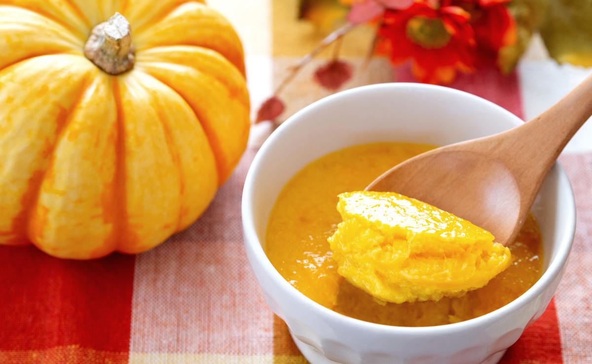 С при помощи блендера превратите тыкву в однородное пюре.