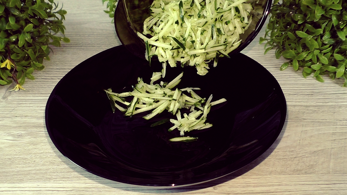 Первым делом необходимо тщательно вымыть огурцы и нарезать их соломкой. Если они слишком сочные, рекомендуется слегка отжать лишнюю жидкость. Затем огурцы следует поместить в удобную миску. Следующий шаг — нарезка крабовых палочек, которые впоследствии добавляют к огурцам. Это базовый вариант, но по желанию можно добавить вареное яйцо или нашинкованную капусту для разнообразия.