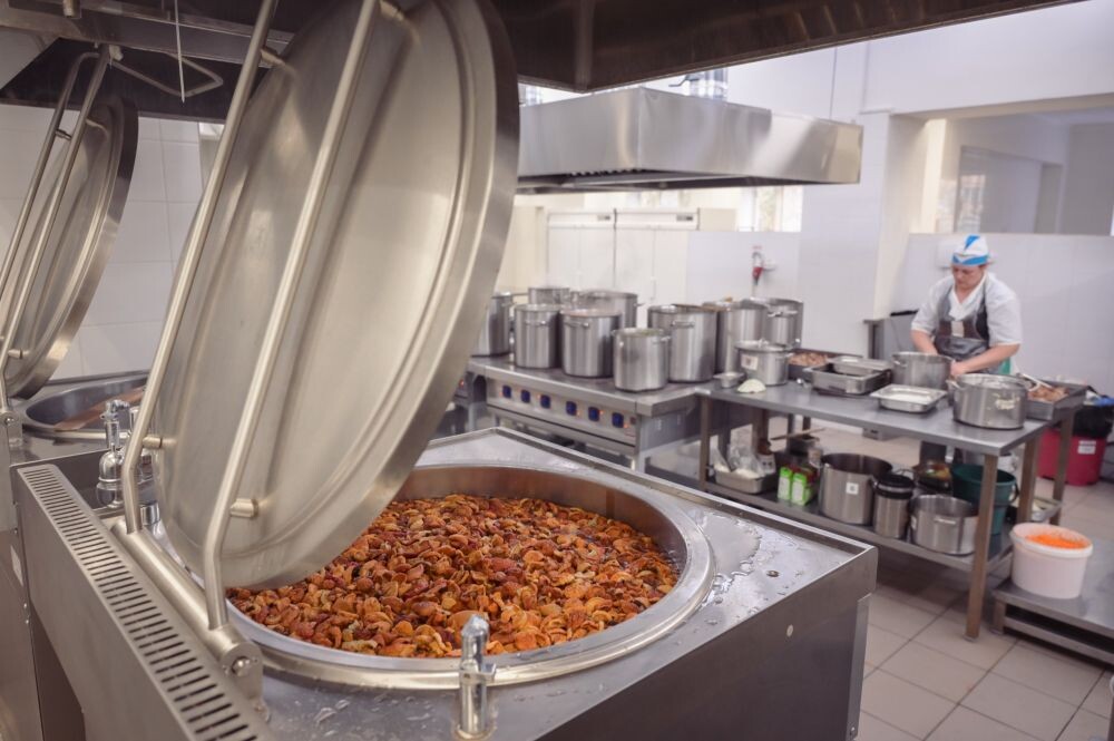 После своего открытия в июле текущего года пищеблок прошел капитальный ремонт, что стало толчком для обновления системы питания. В этом процессе активно участвует аутсорсинговая компания ООО «РСК», которая отвечает за приготовление еды по технологическим картам. Новые условия работы в пищеблоке имеют кардинальные отличия от предыдущих — здесь стало светло и комфортно, вся необходимая техника находится под рукой. В тот день, когда была проведена проверка, в меню предлагались паровые рыбные котлеты — питание готовится щадящими способами, такие как варка, тушение и запекание.