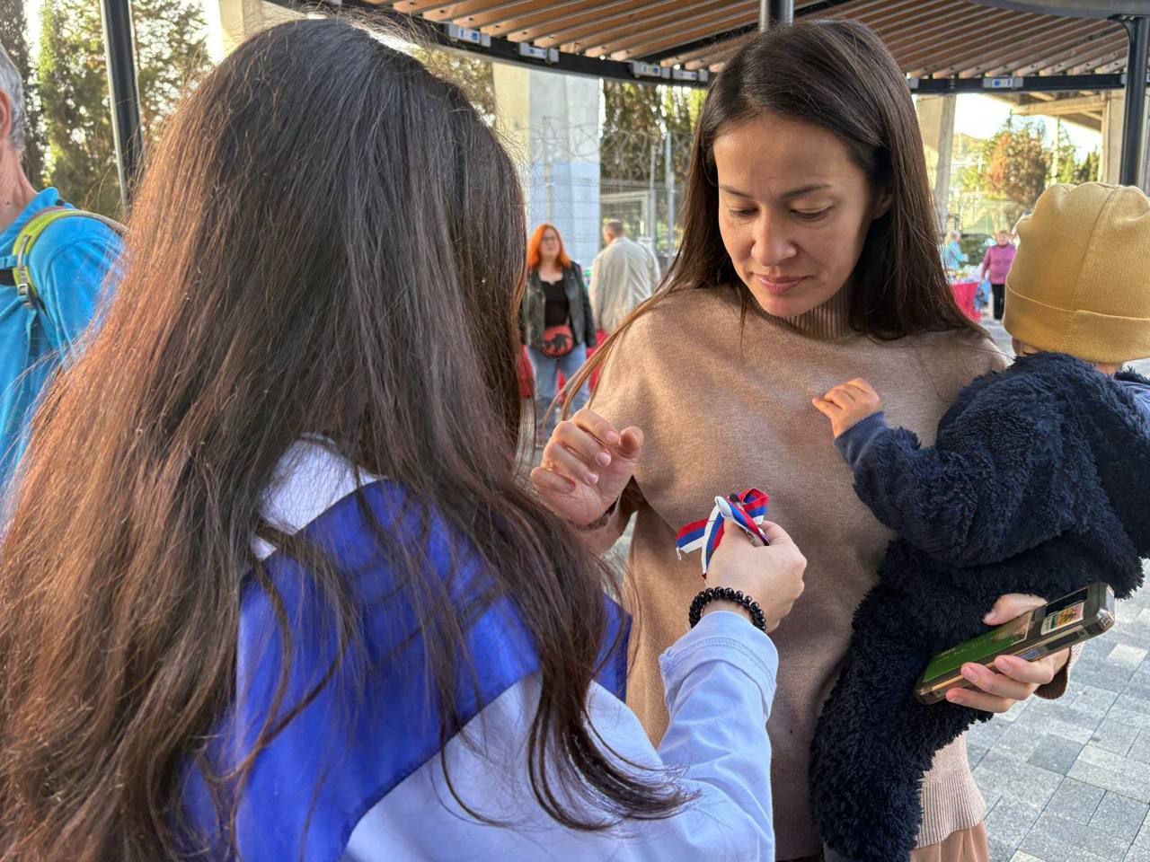 Активисты Молодежного совета в Хостинском районе города раздают ленточки в цветах государственного флага РФ. Кроме того, молодые люди рисуют аквагрим на лицах желающих.