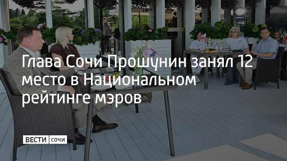 Глава Сочи Андрей Прошунин вошел в первую группу Национального рейтинга мэров, заняв 12-ю позицию. Рейтинг, составленный Центром информационных коммуникаций "Рейтинг" совместно с Финансовым университетом при Правительстве РФ, оценивал эффективность работы 88 глав крупных муниципальных образований.