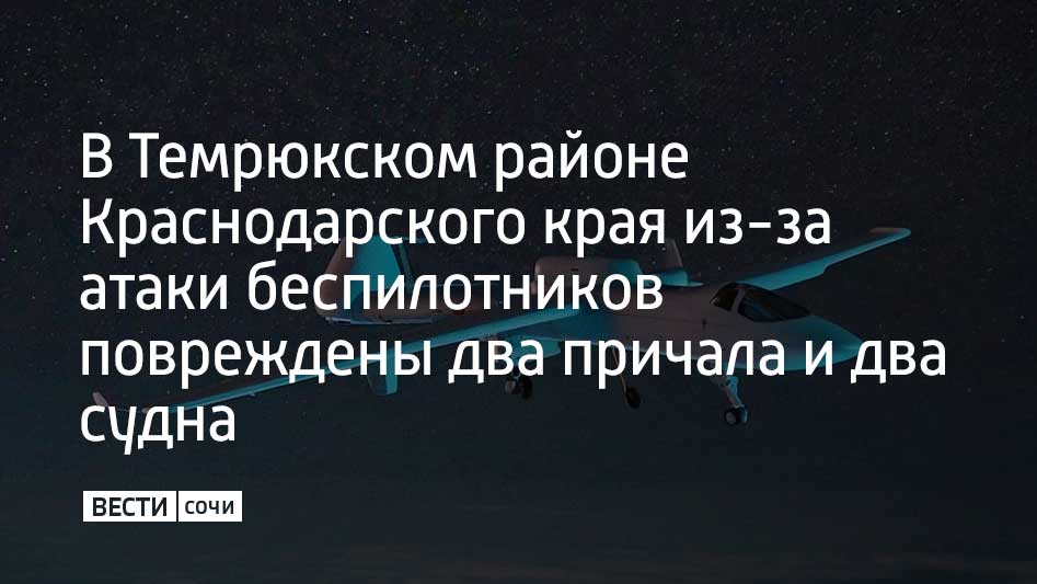 В поселке Волна Темрюкского района из-за атаки БПЛА повреждения получили два причала и два судна. Проводилась эвакуация – среди членов экипажа и сотрудников на берегу пострадавших нет. Сейчас идет активное тушение пожаров площадью от одной тысячи квадратных метров до 1,5 тысячи квадратных метров. Также в поселке Волна обломки БПЛА повредили трубопровод на одном из терминалов. Пострадавших нет, возгорание тушат.