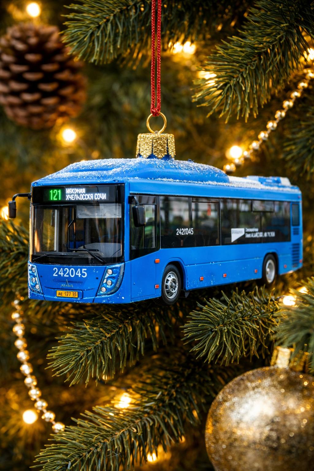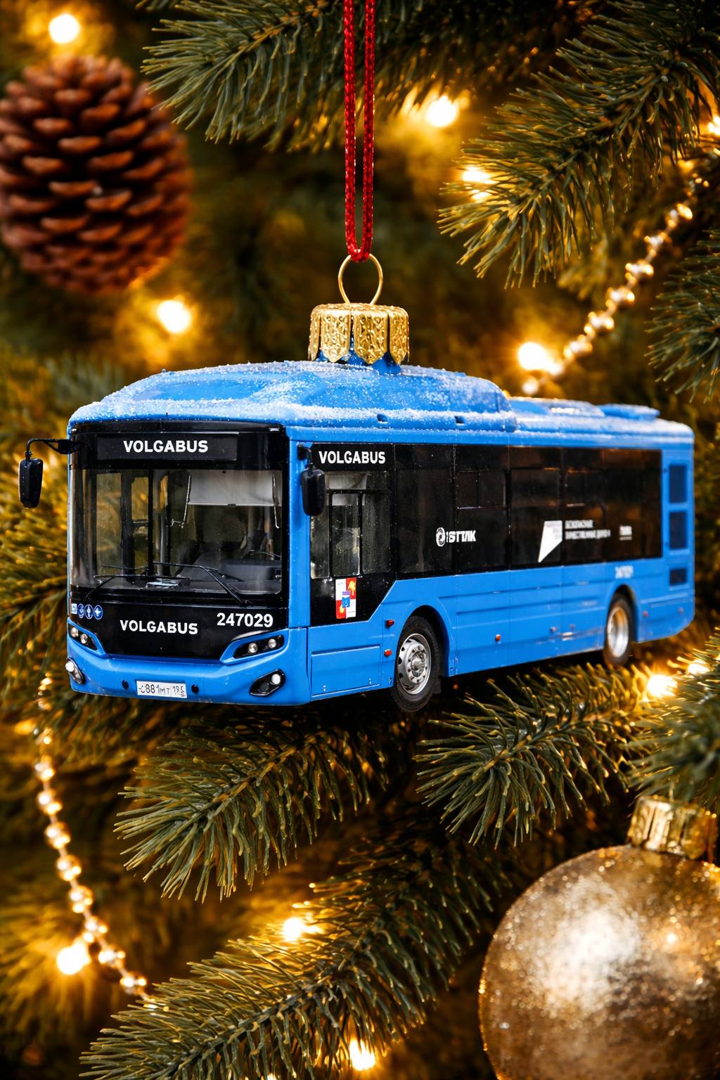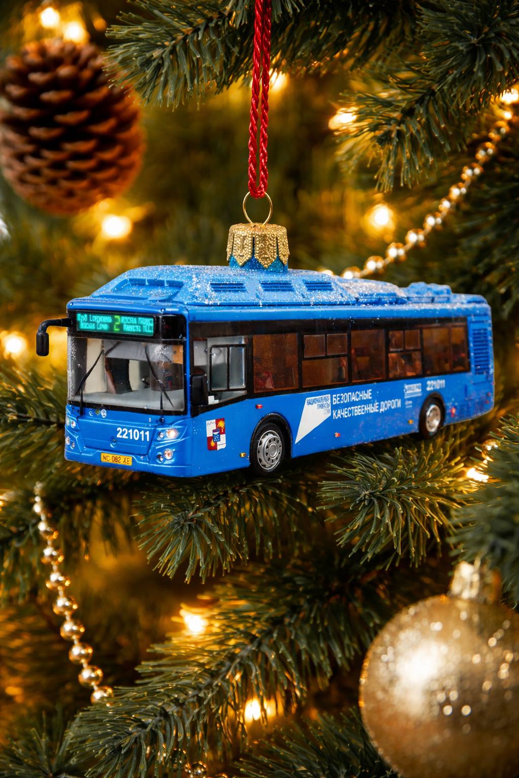 Ёлочные игрушки с нашими автобусами, сгенерированные нейросетью