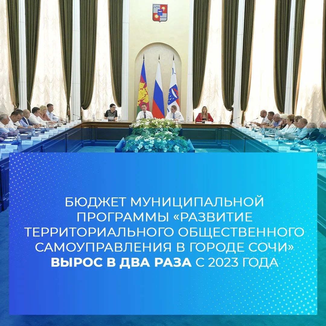 В 2025 году бюджет муниципальной программы «Развитие территориального общественного самоуправления в городе Сочи» вырос в два раза с 2023 года. На сегодняшний день на территории города Сочи успешно работают 80 территориальных общественных самоуправлений.