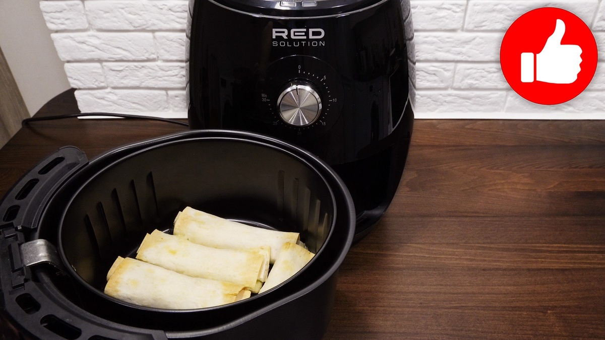 Подготовленные рулетики отправляются в корзину аэрогриля. Для завершения придайте им золотистую корочку, смазав небольшим количеством подсолнечного масла. Готовьте в течение 4-5 минут при температуре 200°C. Этот процесс подарит трубочкам аппетитный вид и хрустящую текстуру.