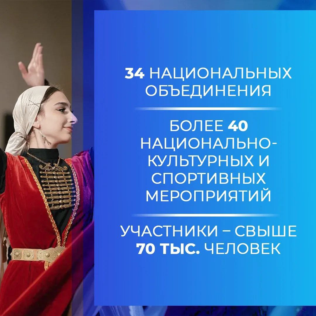 В 2025 году в Год 80 -летия Победы и Год защитника Отечества в Сочи прошло более 40 национально-культурных и спортивных мероприятий. От 34 национальных объединений курорта в них приняли участие свыше 70 тысяч человек.