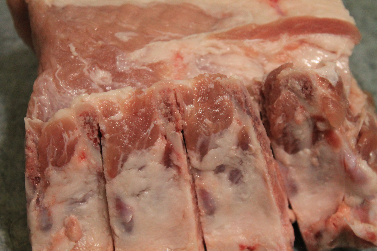 В распоряжении мастера хребтовая часть свинины — корейка, которая вдохновляет на кулинарные эксперименты. Удалив лишние остатки и разрезав косточки, он облегчает разделку и увеличивает шансы на идеальные медальоны. Подходящие куски мяса достаточно легко обрабатывать, это открывает простор для творчества.