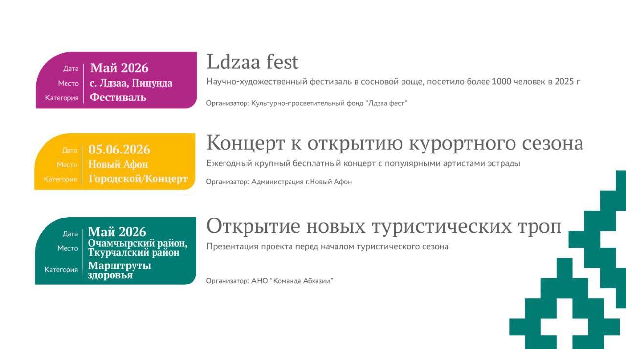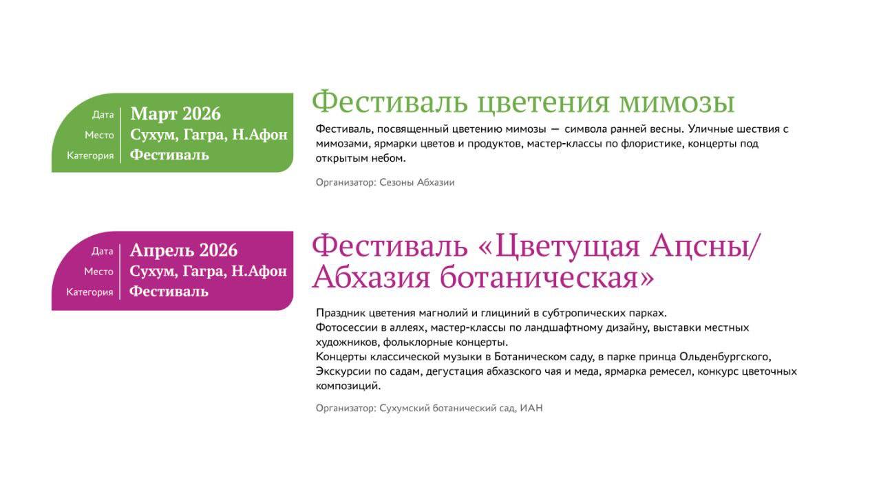 Министерство туризма Республики Абхазия представляет «Событийный туристический календарь 2026 года» — масштабный план мероприятий, призванный раскрыть культурный, гастрономический и природный потенциал страны в течение всего года.