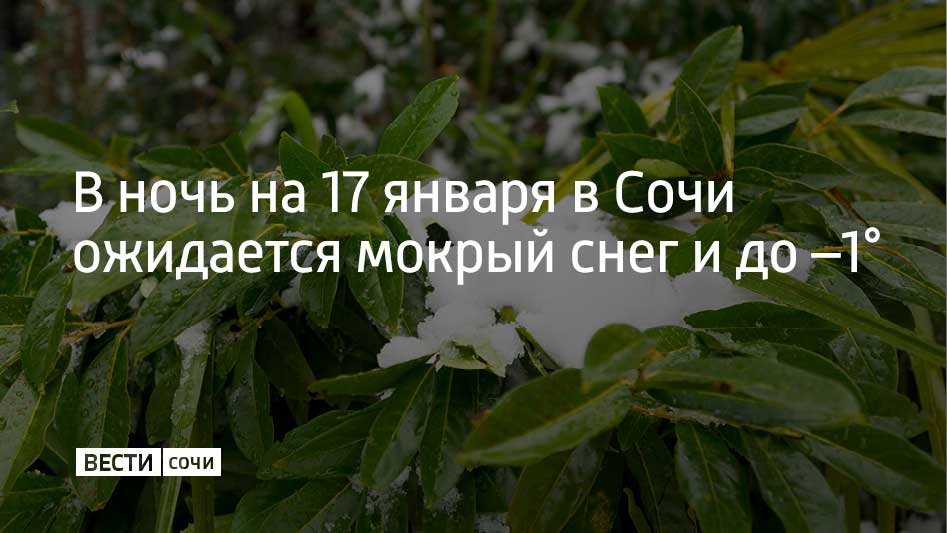Ночью и утром 17 января в Сочи и на федеральной территории "Сириус" ожидается мокрый снег и понижение температуры воздуха на побережье до –1 °C. В предгорьях и горах прогнозируются сильные снегопады, предупредили в городской администрации.