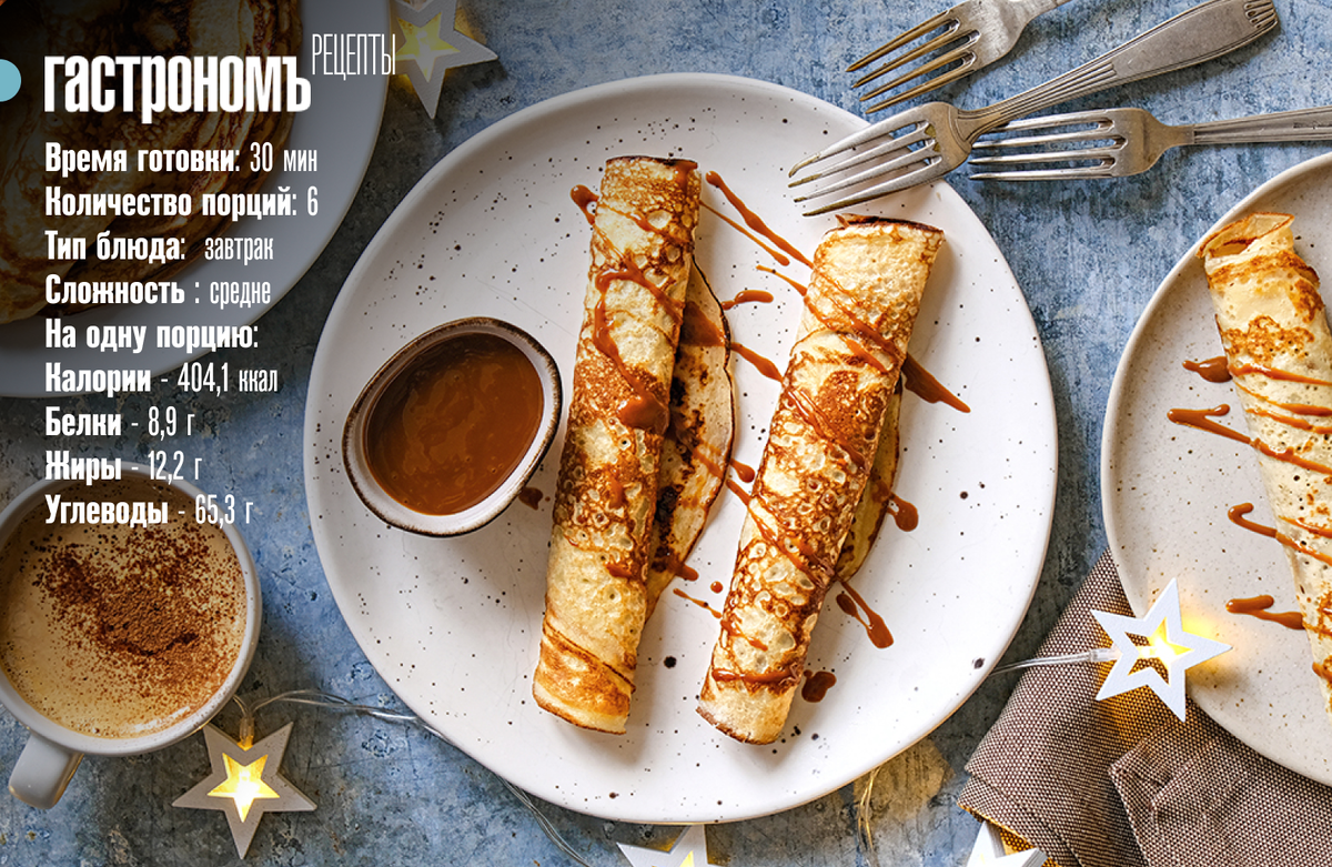 8. Для подачи готовые блинчики можно смазать вареной сгущенкой и свернуть в конвертик.