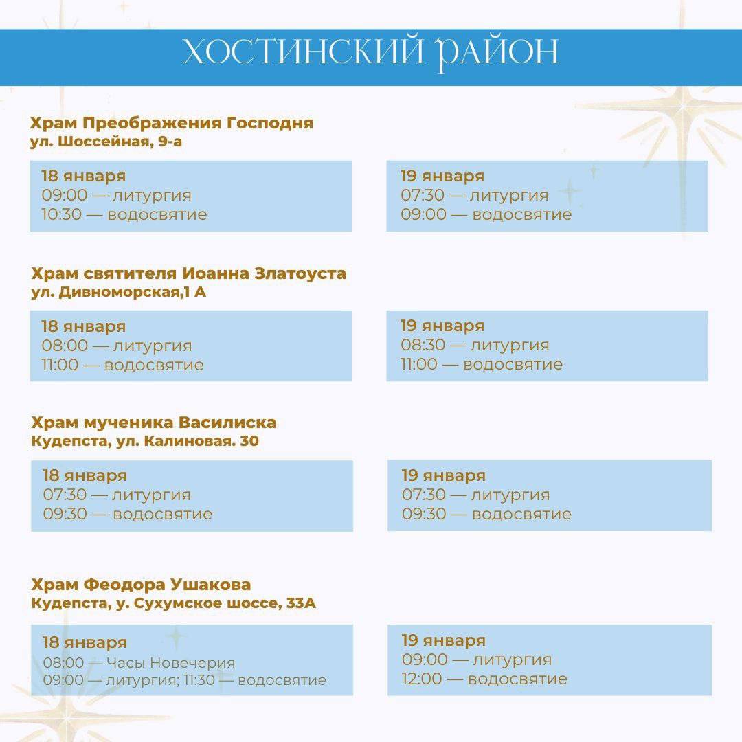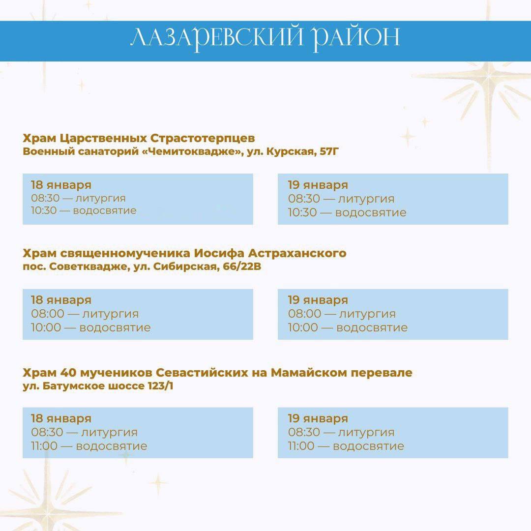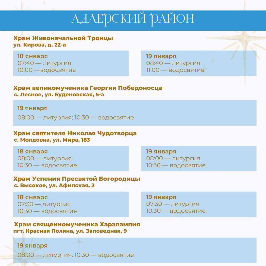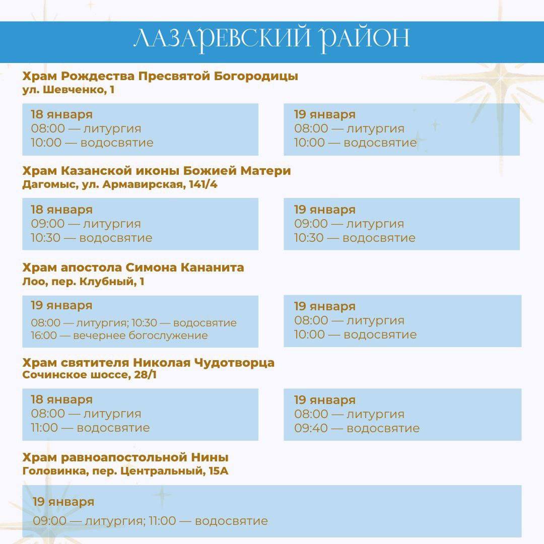 В период празднования Крещения Господня 18 и 19 января в храмах Сочи пройдут праздничные службы и чин водосвятия.