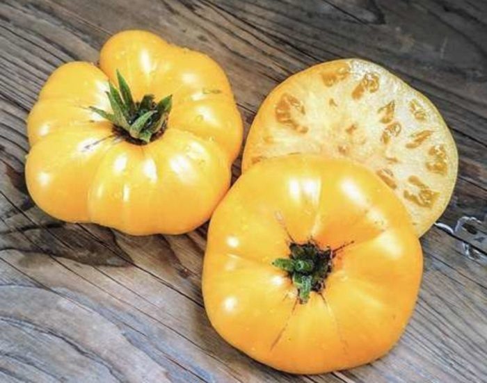 Гордостью сорта являются его крупные плоды, достигающие 300 граммов. Их традиционная округлая форма и красивый светло-желтый цвет делают Гнома Мистера Сноу настоящей находкой для гурманов. Мясистая и сочная мякоть с минимальным количеством семян придает плодам идеальные свойства для переработки.