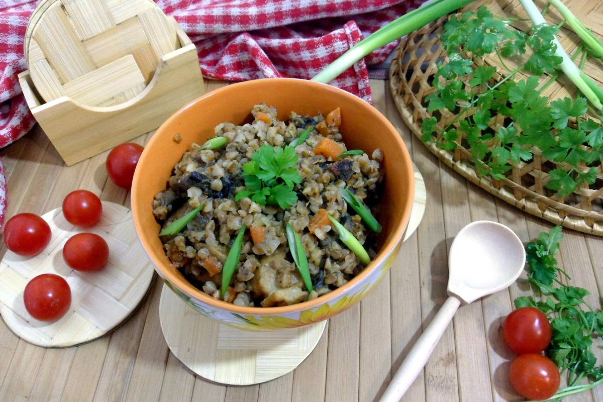 Затем следует добавить морковь, продолжая процесс жарки до её мягкости. В завершение в сковороду добавляются сметана, горчица и соль. Все тщательно перемешать, а затем закладывать предварительно промытую гречку. Влить горячую воду, довести до кипения, уменьшить огонь и оставить на медленном огне примерно на 40 минут для томления. В конце перемешать и дать настояться под крышкой еще 10-15 минут, чтобы гречка впитала все ароматы.
