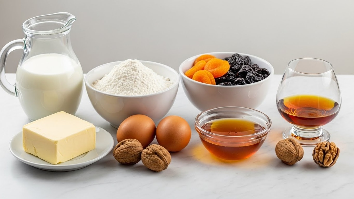 Сухофрукты нужно хорошо промыть и залить 50 мл коньяка на ночь, чтобы они напитались ароматом и стали мягче.