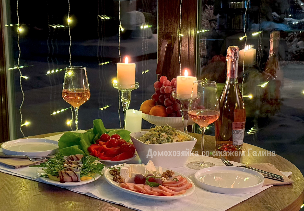 Вечером, когда празднование пошло на спад, семья решила провести тихий вечер вдвоём с любимым. Без лишних изысков в кулинарии - вдвох не нужно много блюд. Снаружи царил морозец и легкий снежок, а мягкий свет свечей создавал настоящую рождественскую сказку.