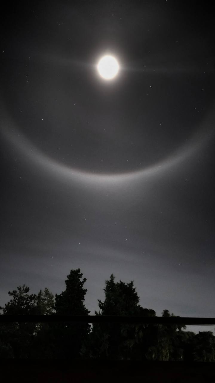 Несмотря на мистический вид, у этого явления есть научное объяснение. Лунное гало возникает из-за преломления света в ледяных кристаллах в верхних слоях атмосферы (на высоте около 6 километров).