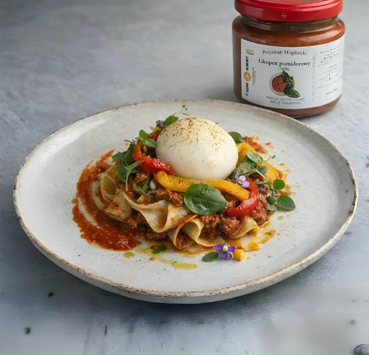 Ликопин в томатном соусе не просто краситель — он задаёт основу вкуса и делает блюдо особенным. Лук медленно раскладывает сладость, а чеснок добавляет легкую остроту, не перегружая композицию.