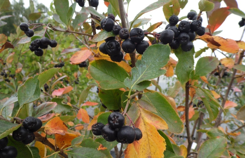 Соцветия похожи на розовые или белые цветы, они украшают растение в конце весны и дают плоды, которые собирают к осени. Ягоды отличаются крупнее привычной черноплодки и имеют насыщенный вкус с мягкой кислинкой и легкой терпкостью, что делает их пригодными как для свежего потребления, так и для домашних заготовок.