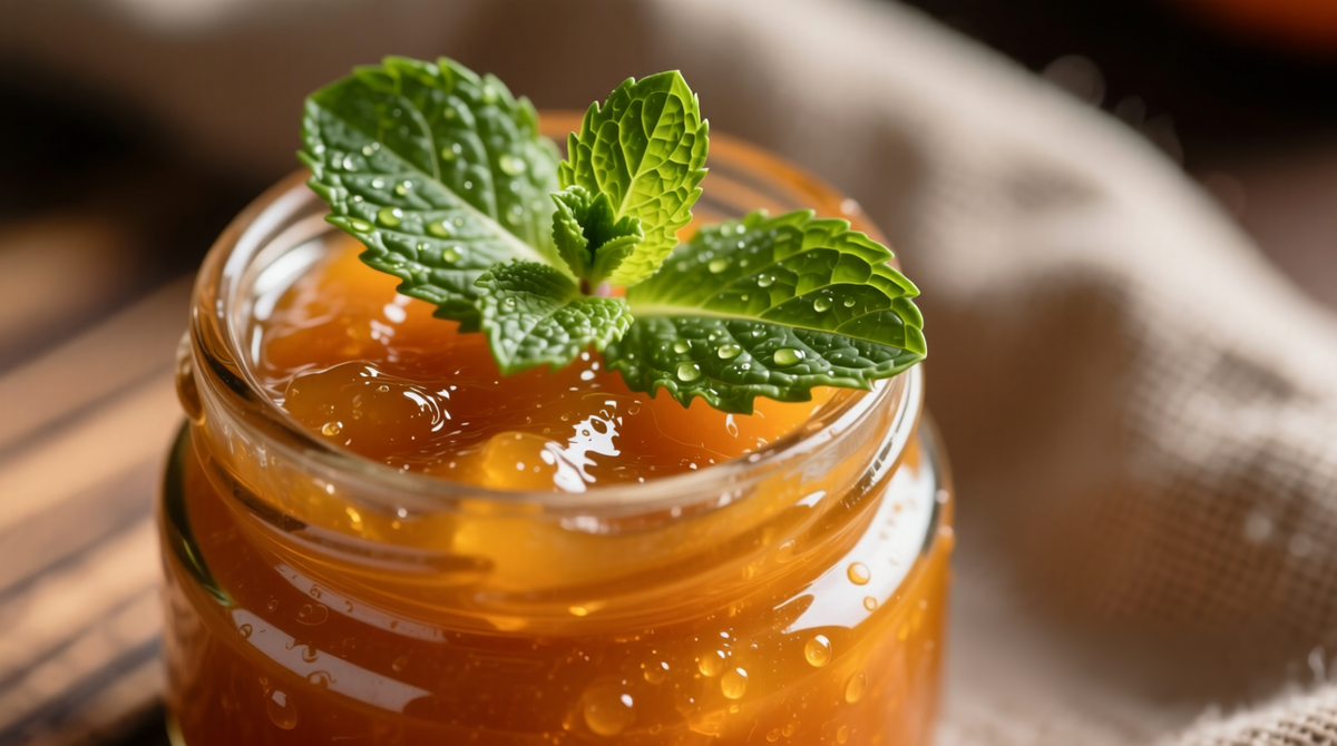 Прогулка по саду на кухне начинается с простого мгновения прохлады: ставят на стол банку, заполненную золотистой массой дыни и зелёной свежестью мяты. Этот джем словно маленькое лето, упакованное в стекло, готовое согреть в холодные дни.
