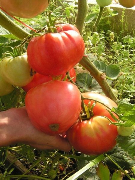 Плоды сердцевидной формы, плотная мясистая мякоть и масса до 800 г на нижних кистях — вот то, за чем сюда идут огородники. Чтобы довести до максимума вес, применяют нормирование кистей и увеличение калийного питания в период налива. Масса в среднем около 200–214 г, но допускаются экземпляры даже больше нормы при правильной настройке ухода.
