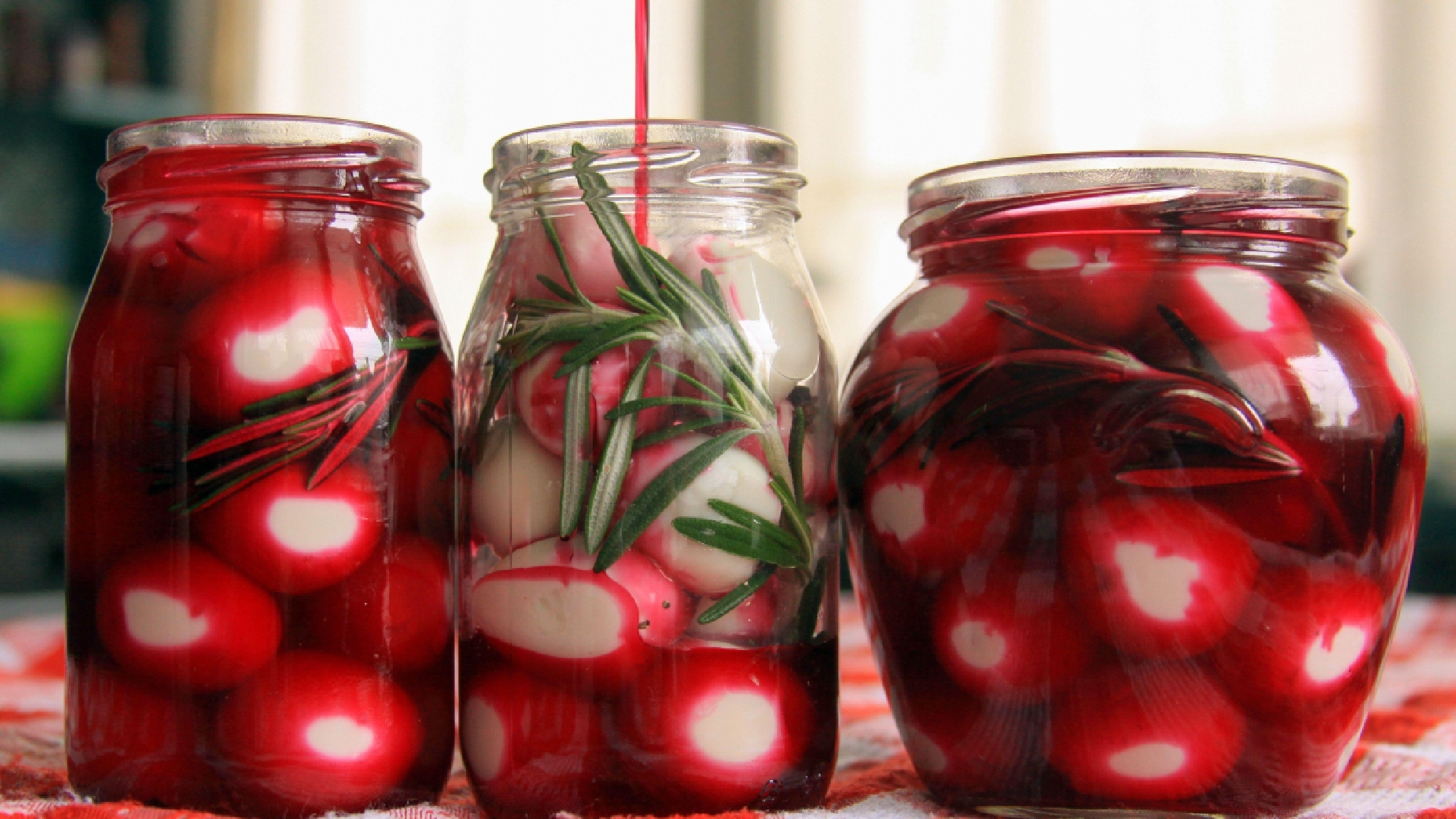 Аккуратно сложите очищенные яйца в банку с широким горлышком и залейте свекольным маринадом. Закройте крышкой и уберите в холодильник. Блюдо должно настаиваться минимум 6 часов. Перед подачей достаньте яйца из банки и украсьте зеленью, советует портал Нямккин.