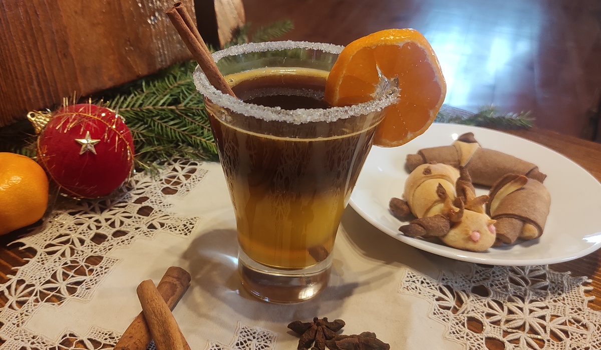 Пока готовится сироп, можно подготовить бокалы. Резаный мандарин используют для украшения: кромка бокала обмакивается в сок, а потом в сахар, создавая привлекательный ободок. Бокал нужно слегка подогреть, погрузив его в теплую воду, чтобы избежать трещин при добавлении горячих напитков.