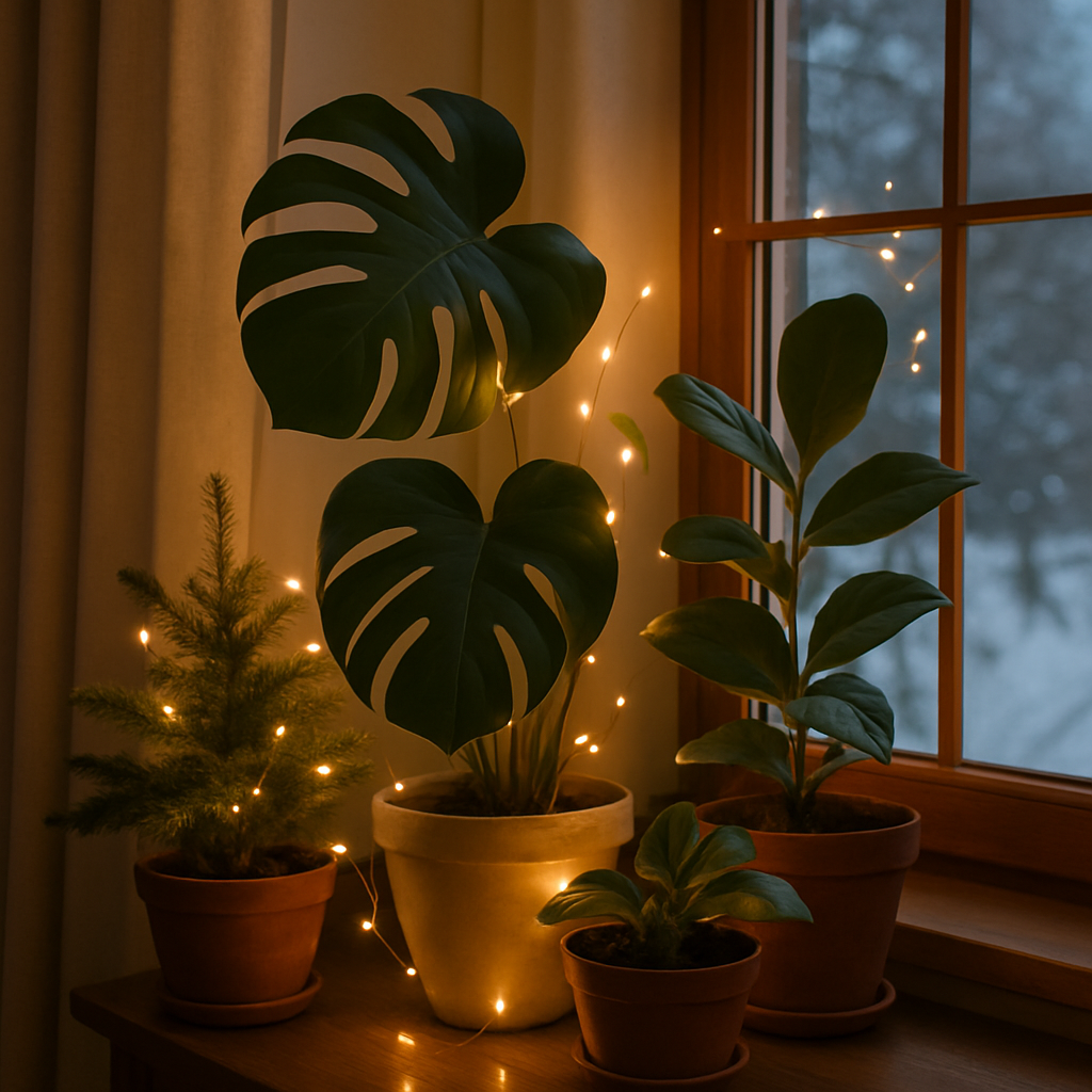 Даже минимальное освещение имеет значение. Новогодние огни производят теплый и мягкий свет, который растения ощущают особенно тонко.