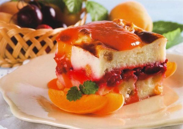 Готовую запеканку аккуратно переложите на тарелки и щедро полейте абрикосовым вареньем. Если самого варенья нет, лучше всего взять его у знакомой бабушки! Этот завтрак подарит вам заряд бодрости и хорошего настроения на весь день. Однако придется проснуться пораньше – иначе завтрак может ограничиться лишь бутербродами.