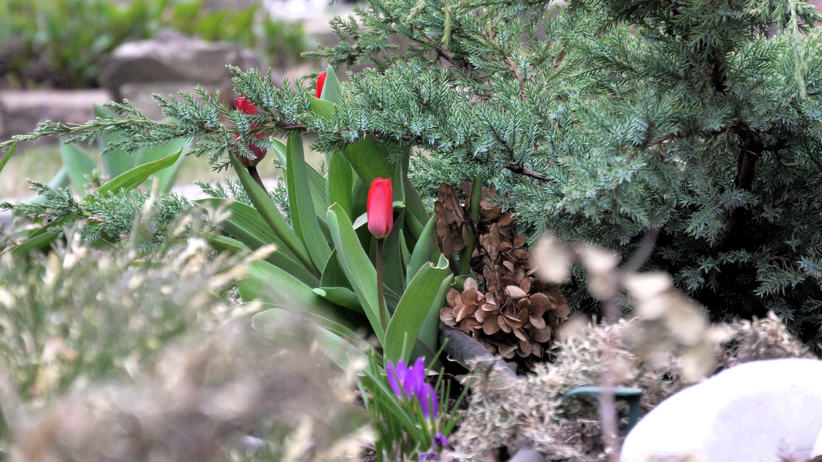 Одним из первых ботанических тюльпанов в саду стал, вероятно, тюльпан Регеля. Это растение продолжает радовать глаз, несмотря на отсутствие избыточной информации на момент покупки. В этом сезоне ожидается также появление тюльпана Саманта, к которому возникает множество вопросов по поводу его классификации.