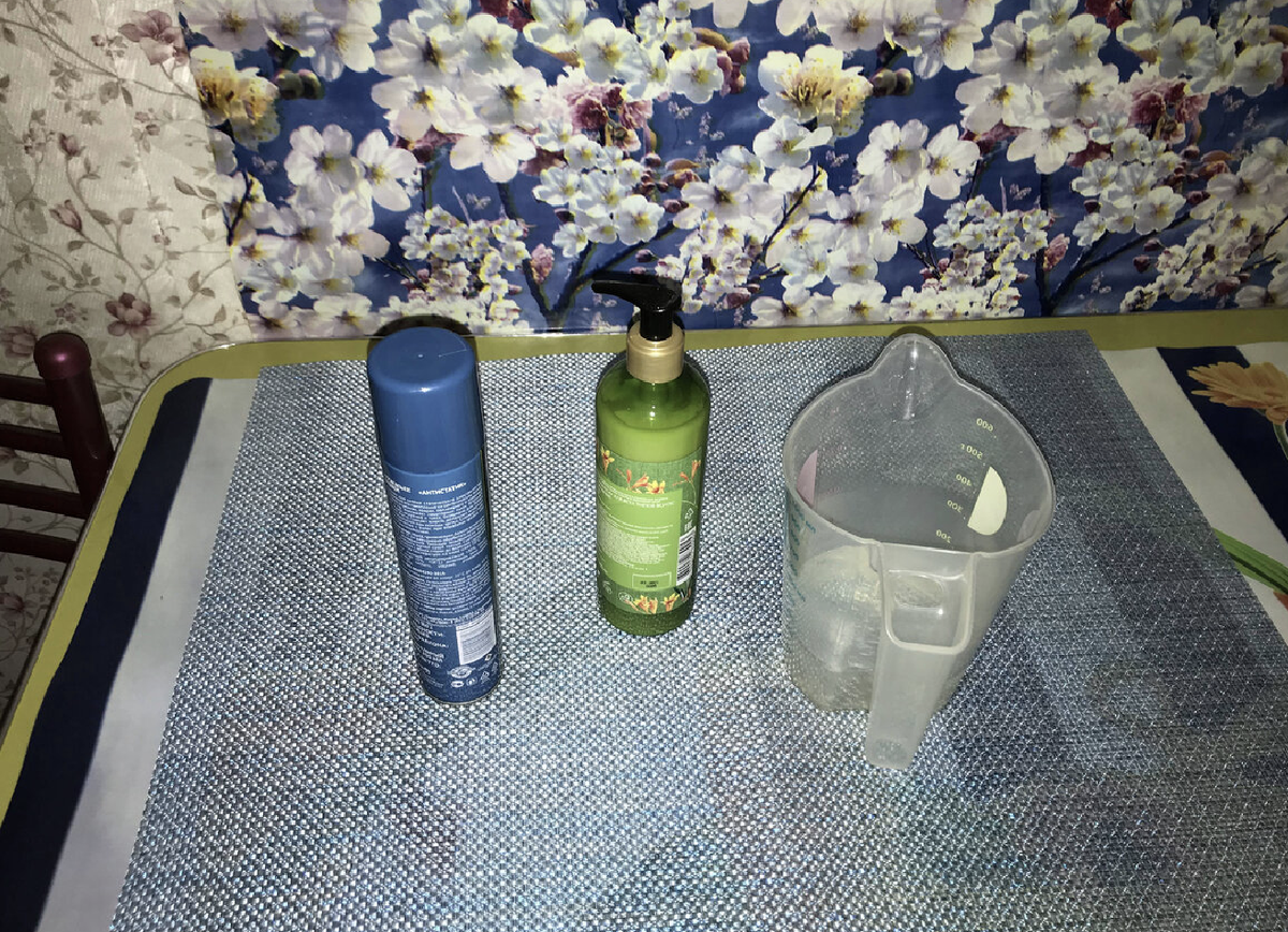 - Кондиционер для волос: 200 мл теплой воды, в которую добавляется кондиционер. Теплая вода помогает качественно растворить компоненты.